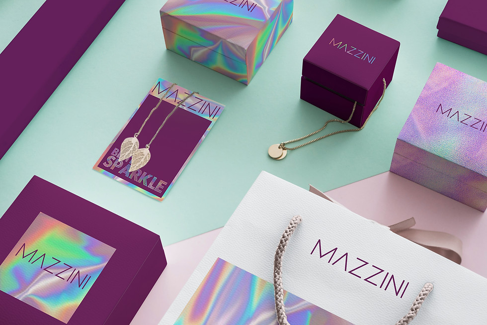We went for a vibrant, delightful and whimsical tone for Mazzini with the tagline- ‘Be The Sparkle’ addressing the eclectic, fun and confident Mazzini Woman. The sparkle translated into the visual language in the form of shining surfaces, a gradient colour palette and highlights of bling. Multipletextures and surfaces were developed as backdrop for the visual environment and products. From packaging to gift boxes, from promotional kits to digital environment, these textures, colours and surfaces gave the brand a ‘reason to sparkle’.